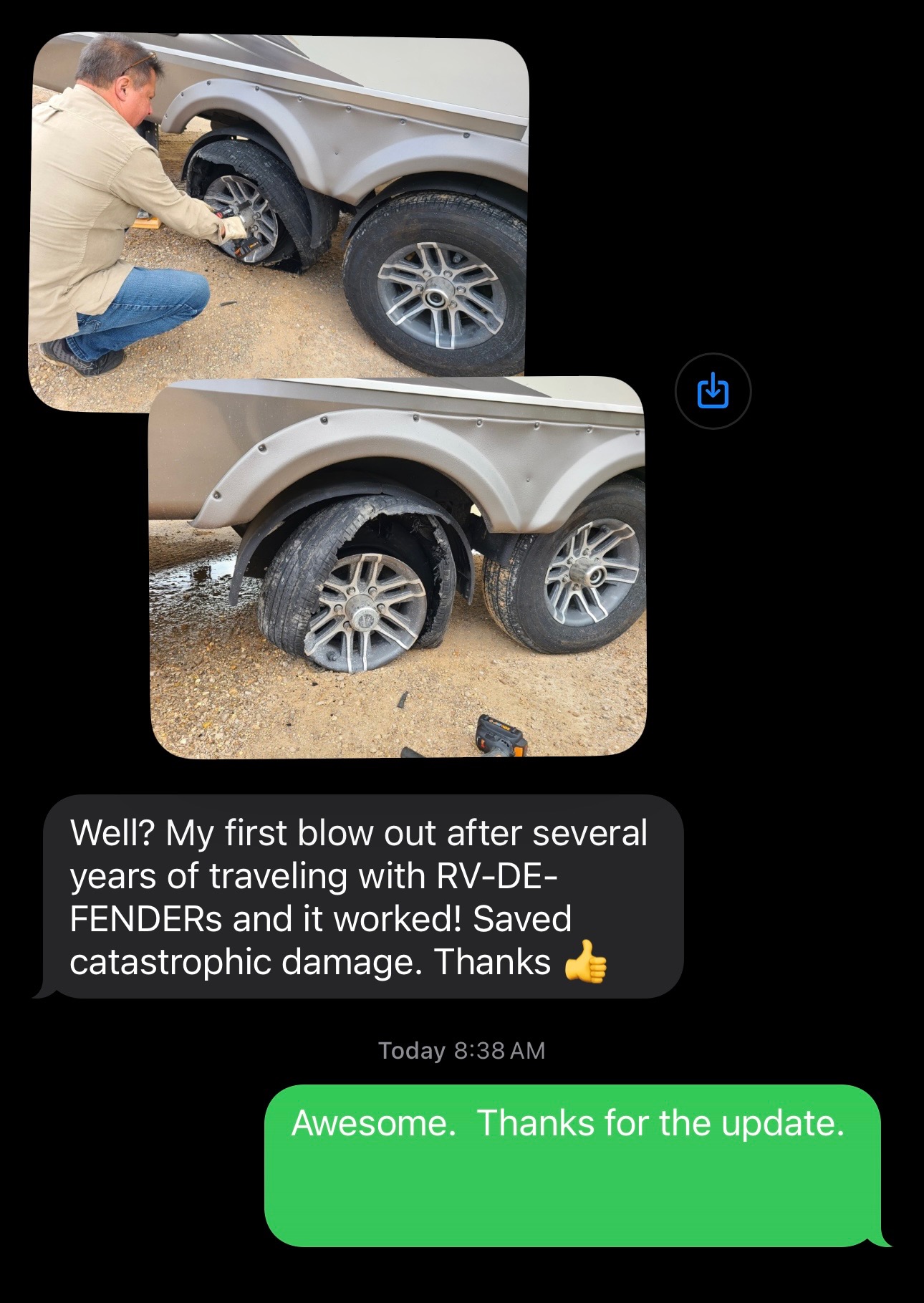 Bottom line, RV-DE-FENDER® reduces a 6 month blowout aftermath ordeal...